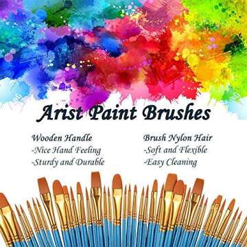 Elevate your artistic endeavors with the WILLONE Paint Brushes Set, a comprehensive 30-piece collection designed for both aspiring and seasoned artists. These brushes feature round pointed tips made with high-quality nylon hair, providing you the flexibility to create both defined lines and broad strokes with ease. The set is perfect for a variety of mediums, including acrylic, watercolor, and even for more detailed work like face painting, nail art,...