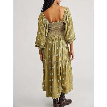 The lantern puff sleeves and smocked waistline not only enhance your figure but also provide a trendy flair that echoes modern fashion sensibilities. With its square neck and ankle-length style, this dress offers a relaxed fit that flatters all body types. The flowy silhouettes allow for easy movement, making it a joy to wear throughout the day.