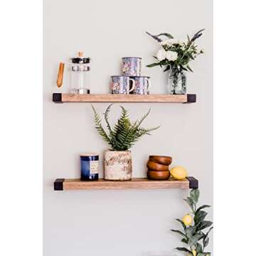 Willow & Grace Designs Floating Shelves - Set of 2 Natural Wood for Wall Decor in Living Room, Bathroom, Kitchen & Laundry Room, Made w/Real Wood Floating Wall Shelf, Easy Install - Walnut - 24"