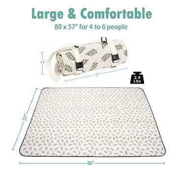 Show more Experience the ultimate in outdoor comfort with the WILLOW WEAVE Picnic Blanket, the perfect companion for all your adventures! This large size picnic blanket spans 79 inches long and 57 inches wide, making it spacious enough to accommodate up to 6 people comfortably. Once you’re done enjoying the sun and snacks, it easily folds down to a compact 12 inches wide and 4.5 inches deep, so you can take it anywhere with ease.