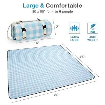 Show more Experience the ultimate outdoor lounging with the WILLOW WEAVE Picnic Blanket. Designed for spacious comfort, this extra large picnic blanket measures an impressive 80 x 80 inches, making it perfect for gatherings of family and friends—enough space for 7-8 people to sit comfortably or 3-4 people to lie down. Whether you're headed to the park, beach, or on a camping trip, this picnic mat is an essential companion for making lasting memories in nature. Crafted with a classic neutral blue and white check pattern, it adds a touch of elegance to any outdoor setting while ensuring functionality meets style.