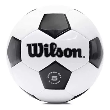 The WILSON Traditional Soccer Ball - Size 5 is designed for soccer lovers seeking durability and performance. Its synthetic leather cover and butyl rubber bladder ensure longevity and consistent play. Ideal for all ages, this ball combines classic aesthetics with functional design.