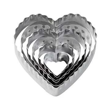 Show moreDiscover the joy of baking and creativity with this exceptional set of stainless steel heart-shaped cookie cutters. These cutters are not just tools; they are a gateway to bringing sweetness and love into your culinary creations. Crafted with care, the vibrant and durable design ensures years of delightful baking experiences. The unique *two-sided design* allows you to choose between a straight edge for a classic look or a wavy edge for an elegant touch, making them perfect for any occasion.