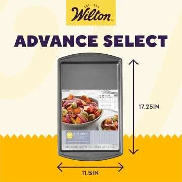 Show moreDiscover the ultimate baking companion with the Wilton Advance Select Non-Stick large cookie sheet. Crafted with exceptional attention to detail, this versatile baking pan is designed to elevate your culinary creations. Embracing the power of innovation, it features a DuraLast Silicone-Infused Coating that not only enhances non-stick performance but is also dishwasher safe and made without PFAS for your peace of mind. Whether you're whipping up a batch of warm chocolate chip cookies, baking a savory jelly roll, or preparing a perfect pizza, this large sheet pan has got you covered.