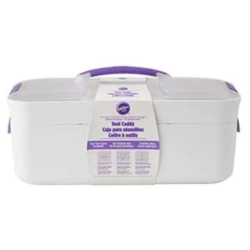 Show moreElevate your baking experience with the Wilton Decorator Preferred Cake Decorating Tool Caddy, designed specifically for cake decorating enthusiasts. This versatile caddy is crafted from durable materials, ensuring that your precious decorating tools are safely stored and easily accessible when you need them the most. With dimensions of 17 x 8 x 8 inches, it offers ample space for all your essentials, including piping bags, chocolate molds, piping tips, and more. The eye-catching design, complemented by vibrant purple latches, not only adds flair but also secures all contents within the caddy during transportation, making it ideal for on-the-go bakers.