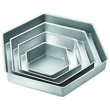 When compared to other baking sets, the Wilton Hexagon Cake Pan Set stands apart due to its unique shape and high-quality aluminum material. Many competitors offer round or square pans, but the hexagon shape provides an exciting visual experience that traditional shapes simply cannot match. Additionally, Wilton's reputation for durability and even heating far exceeds that of lower-cost options, ensuring that your baking results are consistently exceptional no matter what you’re making.