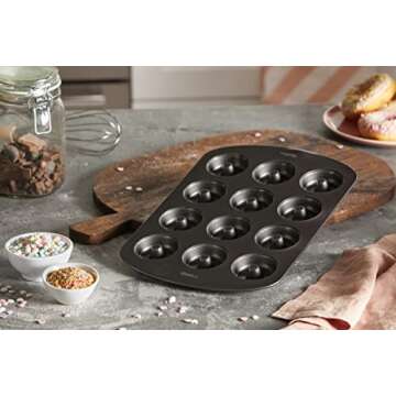 Show moreIntroducing the ultimate baking companion for every aspiring chef and fun-loving family: the Wilton Small Donut Pan. This innovative pan allows you to create delicious, bite-sized treats that are perfect for kids and adults alike. With the capacity to bake 12 adorable mini doughnuts at once, imagine countless weekends transformed into vibrant baking sessions with your children. Bond with your family while whipping up unique flavors and decorating your doughnuts with frosting, sprinkles, and more. This isn’t just a baking pan—it’s your gateway to creating lasting memories in the kitchen.
