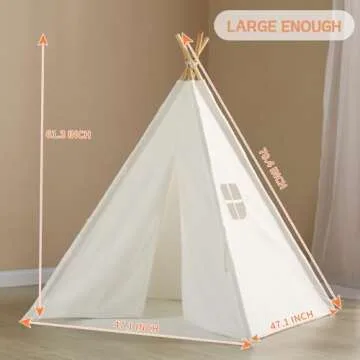 Show more Transform your child's playtime into limitless adventures with the enchanting Wilwolfer Kids Teepee Play Tent! Perfect for both indoor and outdoor use, this charming tent is crafted from 100% natural, non-toxic, unpainted canvas, ensuring a safe haven for your little ones to unleash their creativity. With dimensions of 47.2 x 47.2 x 61.4 inches, there's ample room for kids to lounge, read, and even act out favorite stories with friends. This tent isn't just for play; it's a cozy retreat that encourages children to embrace their independence and express their unique personalities in a secure environment.