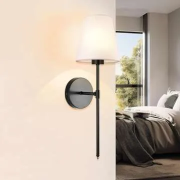WimiSom Wall Sconces Sets of 2, Retro Industrial Wall Lamps, Bathroom Vanity Sconces Wall Lighting with White Fabric Shades, Suitable for Bedroom Living Room Kitchen Corridor (Black)