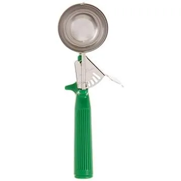 Show moreIntroducing the Winco Ice Cream Disher with Green Handle, a must-have kitchen tool designed for those who value efficiency and quality in food preparation. This stellar scooper boasts a generous Size #12 with a capacity of 2-2/3 ounces and a compact 2-1/2" diameter scoop that makes serving ice cream, mashed potatoes, cookie dough, and even more a breeze. Its standout feature is the reinforced one-piece handle equipped with a durable stainless steel rod, ensuring that it withstands daily use while providing comfort and strength in your grip. Crafted from 18/8 stainless steel, this disher resists rust and deformation, making it not only a reliable scoop but also an elegant addition to your kitchen accessories.