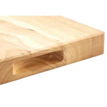 The board features recessed inset handles on the sides, allowing for effortless maneuvering from countertop to table. Although robust, its hardwood composition is gentle on knife edges, minimizing dulling and maintaining your blades' precision for a professional-grade cooking experience. With its rich, elegant tan finish, the Winco WCB-1824 not only serves practical functionality but also enhances your kitchen’s aesthetic charm.