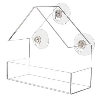 Window Bird House Feeder with Extra Strong Suction Cups Clear Bird Seed Holder for Outside Birdhouse Shape WMBF0001