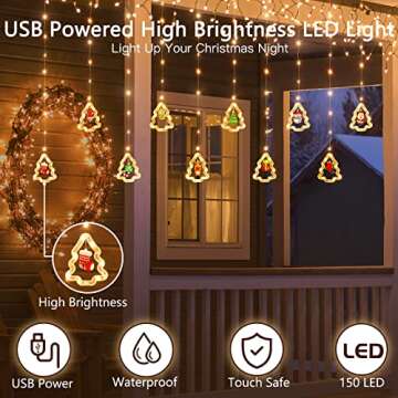 Show moreBrighten up your holiday season with our Window Lights Indoor Christmas Decorations. This magnificent set features 150 energy-efficient LED lights strung across a generous 10ft length, paired with 10 beautifully designed 3D Christmas tree ornaments. The whimsical design not only enhances your indoor decor but can also transform your outdoor space into a festive wonderland. USB powered, it provides the flexibility to hang anywhere without the hassle of finding a power outlet. Available in 8 stunning lighting modes, you'll have the ability to customize your display to set just the right ambiance, creating a delightful atmosphere for friends and family to enjoy.