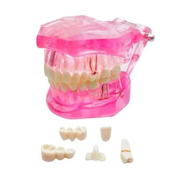 Show more The Windplusya Transparent Disease Teeth Model with Dental Implant Bridge is the ultimate educational tool tailored for both dental hygiene students and professionals. This versatile model serves as an exceptional visual aid, bridging the gap between theoretical knowledge and practical application. Designed to facilitate a comprehensive understanding of various dental procedures, it prominently showcases dental implants, crown bridges, and removable components. Whether you're in a classroom setting or a dental clinic, this model enhances learning and fosters effective communication with patients.