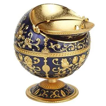 Windproof Ashtray with Lids Metal Portable Cigarette Ashtray for Outdoors and Indoors Use, Hand Stamped Pattern Nice Gift for Men and Women (Navy Blue)