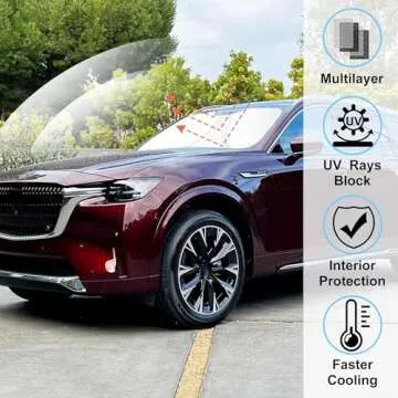Windshield Sun Shade Custom Fit for 2024 Mazda CX90 CX-90 Accessories Foldable Sunshade Sun Blocker Protect Car from Sun Rays & Heat Damage Keep Car Cooler