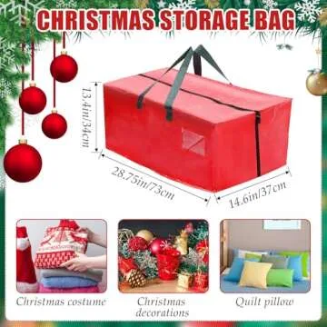 Show moreIntroducing the Windyun Heavy Duty Moving Bags – your ultimate solution for hassle-free holiday storage and organization. These extra large storage bags come in vibrant red and green, perfectly embodying the spirit of the festive season. Crafted from robust PP material, they provide a sturdy, waterproof environment for your cherished decorations, ensuring that your Christmas tree and ornaments stay safe and dust-free year after year. Designed with a generous size of about 28.74 x 14.57 x 13.39 inches, these bags can easily accommodate a wealth of items, from clothing and holiday lights to small pieces of furniture, making them incredibly versatile. With convenient carry handles and dual zippers, accessing your stored items is a breeze, turning what could be a cumbersome task into a straightforward, efficient experience.
