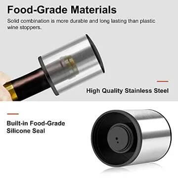 Show moreIntroducing the HOOMIL Wine Stopper - a must-have accessory for wine enthusiasts looking to preserve their cherished bottles. This 2-pack stainless steel vacuum wine bottle stoppers is designed to ensure that your wine remains fresh for up to 7 days, thanks to its exceptional air-removal capabilities. Crafted from high-quality silicone and enclosed in a robust stainless steel 202 casing, this wine preserver effectively combats oxidation, keeping your favorite vintages as delightful as the first pour. Its elegant design not only enhances your home bar aesthetics but also offers a user-friendly experience, making it the ideal gift for any wine lover.