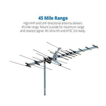- 45 Mile Range: This directional antenna is capable of reaching up to 45 miles, making it perfect for suburban and rural locations.