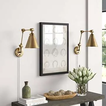 WINGBO Farmhouse Swing Arm Wall Sconce Set of 2, Industrial Adjustable Wall Lamp Light Fixture for Living Room Bedroom Vanity Study Desk Office, Plug in or Hardwired, Brass