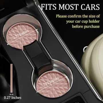 Show moreIntroducing the Wingcases Car Coasters Silicone [4 Pack]—the ultimate accessory for every car enthusiast! Designed meticulously to fit most car cup holder sizes, these coasters measure a perfect 2.75 inches / 7 cm in diameter. Not only do they enhance the aesthetics of your vehicle with their stylish diamond pattern, but they also offer unparalleled functionality. Whether you're on a bumpy road or enjoying a smooth ride, these coasters provide effective cushioning to protect your cup holder from scratches and absorb vibrations, ensuring a quieter driving experience. Plus, their elevated edges can hold spills, making them an essential companion for you during those unexpected drink mishaps. With a variety of vibrant colors available, you can easily match these coasters with your car's interior, adding a personalized touch.