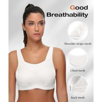 Wingslove Women's High Impact Sports Bra Full Coverage Wirefree Non Padded Workout Bra Plus Size(White,34B)