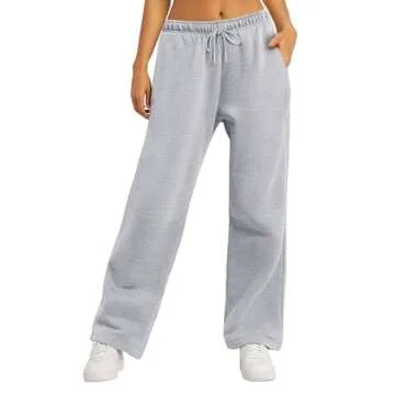 Winioder Wide Leg Sweatpants for Women Elastic High Waisted Baggy Sweat Pants Teen Girls Oversized Straight Leg Sweatpants(Z-Grey,Small)