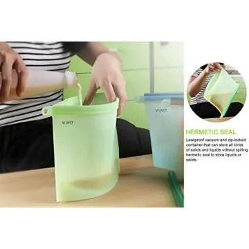 WINIT Reusable Silicone Food Preservation Bags Airtight Seal Freeze Fridge Food Storage Container Savers Bags Versatile Kitchen Cooking Utensil (4pcs)