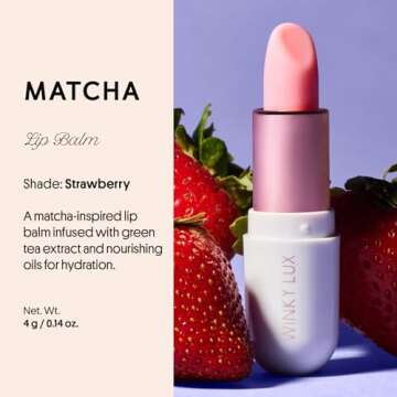 Winky Lux Matcha Lip Balm with Coconut Oil, Vitamin E and Caffeine, Lip Moisturizer, Clear, Strawberry