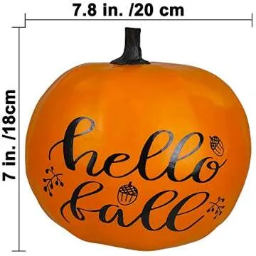 Winlyn 1Pcs 8" Large Hello Fall Orange Pumpkin, Black Lettering Orange Pumpkin Craft Pumpkin, Thanksgiving Pumpkin Decor, Fall Pumpkin Decor