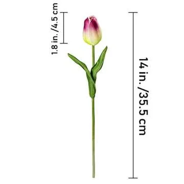 Show more Transform your space into a vibrant spring oasis with the Winlyn 28 Pcs Multicolor Tulips Artificial Flowers. Designed to elevate any decor, these faux tulip stems are crafted from high-quality PU material, ensuring a lifelike look and feel that surpasses ordinary silk flowers. Each stem measures approximately 14 inches tall, making them perfect for medium-sized vases or as standalone accents in any floral arrangement. With a delightful assortment of colors including white, pink, yellow, orange, red, rose red, and purple, these tulips bring an everlasting burst of joy to your home or workspace.