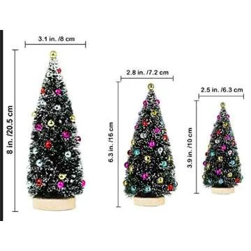 Winlyn 3 Pack Artificial Mini Tabletop Christmas Trees Tiny Frosted Bottle Brush Trees Decorated Small Sisal Trees with White Snow and Colorful Beads Winter Holiday Miniature Décor Assorted Sizes