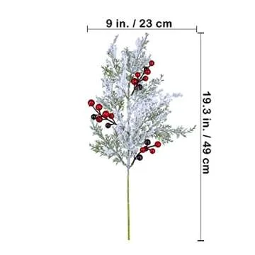 Winlyn 6 Pcs Snowy Artificial Cedar Picks with Red Berries Frosted Faux Cedar Sprays Christmas Cedar Greenery Branches Stems for Christmas Tree Wreath Floral Arrangement Vase Winter Holiday Décor