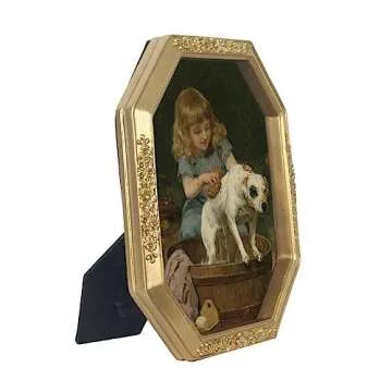 WINPLUS+ 5x7 Vintage Picture Frame, Luxury Antique Polygon Ornate Photo Frame In Pale Gold Tone With Floral Design, Real Glass Front, Retro Home Decor, Wall Mount and Tabletop Display, Art Gallery