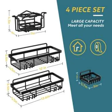 Winproper Shower Caddy, 4 Pack Adhesive Shower Organizer with Soap Holder and Toothbrush Holder,Shower Shelf for Inside Shower with 8 Hooks, SUS 304 Rustproof Stainless Steel Shower Rack-Black