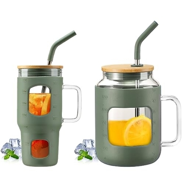 Show moreIntroducing the WINSA 24 oz Glass Tumbler with Lid and Straw & 50 oz Glass Water Bottles with Silicone Sleeve Bundle, the ultimate hydration solution for environmentally conscious individuals who appreciate style and functionality. Crafted from high-grade thickened borosilicate glass, this set features a beautifully designed natural bamboo lid that seamlessly combines elegance with practicality. Each tumbler and bottle is BPA free and eco-friendly, ensuring that every sip you take is safe and sustainable. The bundle includes a generous 24 oz tumbler perfect for your favorite cold beverages and a 50 oz bottle for those who love to stay extra hydrated throughout the day. With its remarkable durability and splash-proof silicone seal, you can enjoy your drinks without worrying about spills or breakage.