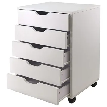 Show moreDiscover the perfect blend of style and functionality with the Winsome 10519 Halifax 5-Drawer Composite Wood Cabinet. Designed to elevate your workspace, this cabinet features a sleek white finish that complements any decor, making it an ideal addition to your home office or craft room. With its sturdy composite wood construction, it promises longevity and style, while the five spacious drawers provide ample storage for crafting supplies, office accessories, or beauty products. Its versatile design allows you to place a worktop over two units, transforming your space into a workstation that inspires creativity.