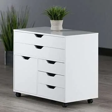 Winsome Halifax Storage Mobile Cabinets, 1 Door, 3 Drawers, 2 Wide Drawers, for Home Office, White