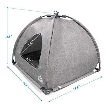 Show more Introducing the Winsterch Cat Beds for Indoor Cats, an exquisite covered cat cave designed with your furry friend's comfort in mind. Measuring 18.5 x 18.5 x 15.8 inches, this cozy sanctuary is perfect for cats or small pets weighing up to 12 pounds. Crafted to provide a warm and secure environment, this cat bed features a soft, fluffy, and removable pillow that can double up as a pet cushion elsewhere. The bed is not only beautifully designed in a neutral grey shade but also incorporates a non-skid bottom to ensure stability on any floor surface.