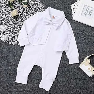 Winter Baptism Outfits for Boys Baby Boy Gentleman Suit Christening Outfit Dedication White Dress Shirt Romper Bowtie Newborn Baptismal Outfit Wedding Tuxedo Formal Suit Easter All White 0-6 Months