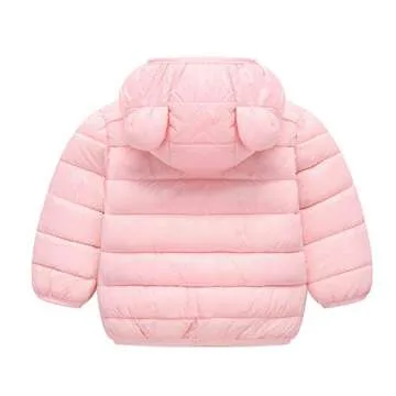 Winter Down Coats for Kids Baby Boys Girls Light Puffer Padded Jacket Bear Hoods Infant Outerwear Pink