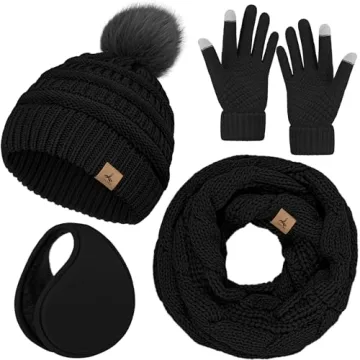 Winter Hat Scarf Gloves Ear Warmer Set for Women Black