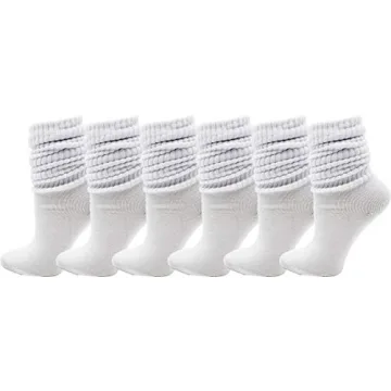 Winterlace 6 Pairs Slouch Socks for Women, Heavy Extra Long Cotton Scrunch Crew Sock, Bulk pack (White)