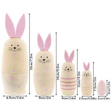Winterworm Set 5 Pieces Unpainted Bunny Wooden Russian Nesting Dolls Rabbit Matryoshka Dolls with Pink Ears for Kids Stacking Drawing Toy DIY Craft Christmas Birthday Easter Eggs Gift