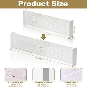 Show moreIntroducing the wintfarm 8-Pack Adjustable Drawer Dividers, thoughtfully designed for those who appreciate both aesthetics and functionality in their organization. Constructed from high-quality ABS material, these sturdy dividers are engineered for long-lasting use. The adjustable design effortlessly expands from 10.63 inches to 18.5 inches, allowing you to customize the length to suit various drawer sizes. At 3.54 inches high, they fit snugly without overcrowding your space. The innovative Eva foam sponge edges provide a secure fit while ensuring that your drawers remain scratch-free and protected, making this organizer not just practical but also a wise investment for your home and office.