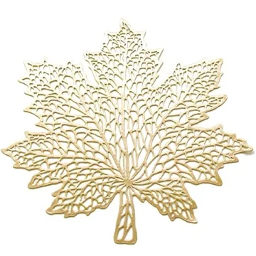 Show more Experience the beauty and functionality of the Wintop 17"×17.25" Pressed Vinyl Metallic Fall Placemats, designed to elevate your dining experience! This stunning set of six placemats showcases an exquisite gold design on the front, with a versatile desert sand color on the reverse, making these placemats perfect for any occasion. Crafted from high-quality eco-friendly vinyl, these placemats not only look fabulous but are built to last, adding a touch of elegance to your autumn harvest table settings, Thanksgiving gatherings, or festive parties. The meticulous attention to detail in their pressed and hollowed design means they'll grab the attention of your guests while providing a practical surface for your dining needs.