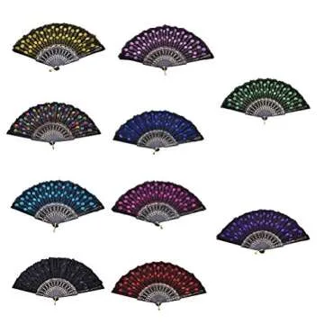 This delightful collection comes in 10 vibrant colors including green, red, royal blue, rose, pink, multi, purple, black, blue, and yellow, ensuring that there is a fan to match any outfit or occasion. Imagine hosting a summer wedding, a tea party, or even decorating your room with these tasteful accessories!