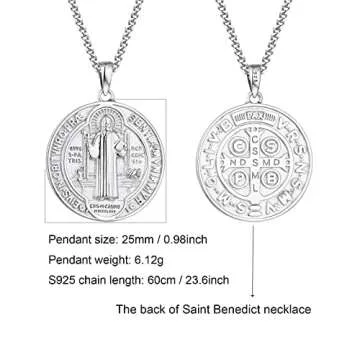WIOY Saint Benedict Medal Necklace - 925 Sterling Silver for Men & Women