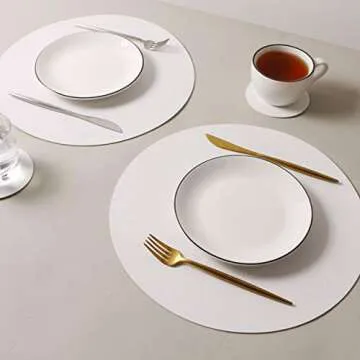 Wipeable Placemats and Coasters Leather Table Mats Waterproof Heat-Resistant Easy to Clean for Dining Table Set Kitchen Table Set of 4, White