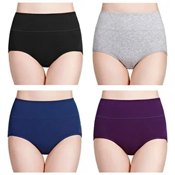Wirarpa Women's Cotton Underwear High Waisted Ladies Panties Full Coverage Briefs 4 Pack (Regular & Plus Size)